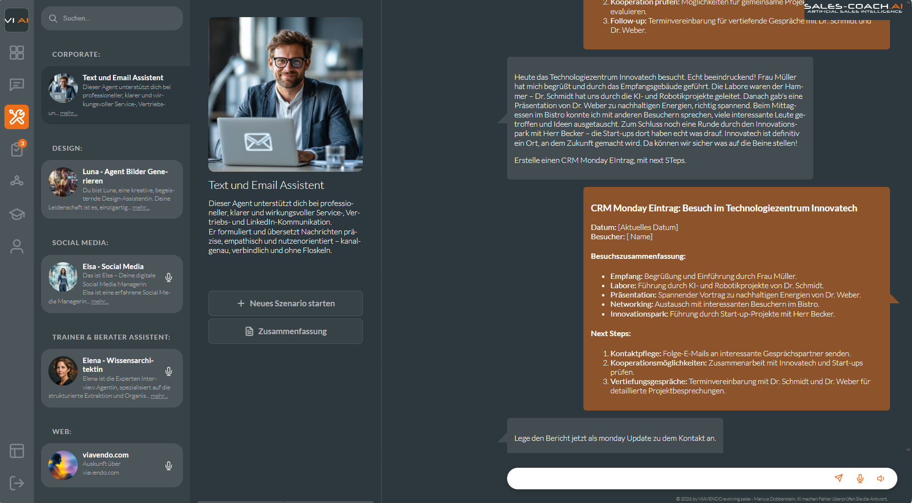 Neue Sales‑Kolleg:innen üben vom ersten Tag an echte Gesprächssituationen – mit KI‑Rollenspielen und Echtzeit‑Wissen aus der Wissensbasis (VIKI). So wird die Ramp‑up‑Zeit beim Vertriebstraining messbar kürzer, ohne dass erfahrene Kolleg:innen ständig einspringen müssen.